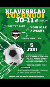 Op 5 en 6 juni 2026 organiseert FC Klazienaveen een voetbaltoernooi voor de JO11, JO13 en JO15 categorie. JO11 speelt op vrijdagavond 5 juni en JO13/JO15 op zaterdag 6 juni. Het beloofd een toernooi vol voetbalplezier te worden!